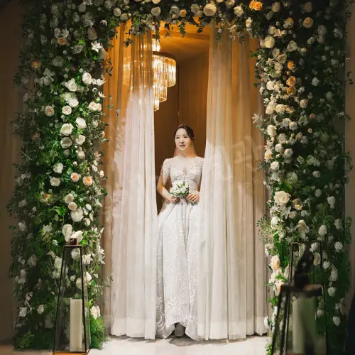 - 높은 층고와 긴 버진로드를 자랑하는 컨벤션 스타일의 럭셔리한 웨딩홀.