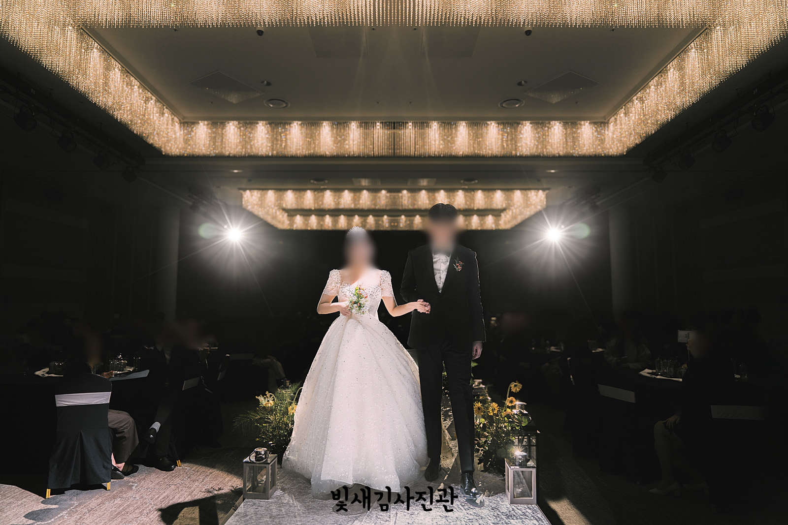 경원루 지하1층에 위치한 시그니처홀에서 본 예식이 진행되었어요. 야외결혼식일 때는 연회장으로 사용되는 장소이기도 한데요. 대개 호텔예식이 그렇듯 식사가 예식과 함께 시작되는 동시예식으로 진행됩니다. 플라워장식과 포인트조명, 신랑신부님을 더 부각시킬 수 있는 인물중심 스냅촬영으로 진행했어요.