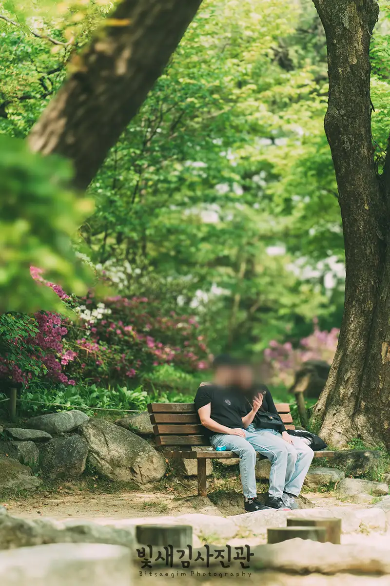 Following a tranquil trail through a temple forest, you may encounter the sight of royal azalea blooms in full splendor. The soft pink petals lay scattered thickly along the path, creating an illusion of a floral snowfall. The vivid contrast between the serene temple setting and the vibrant, life-filled petals offers a unique expression of this season's beauty.