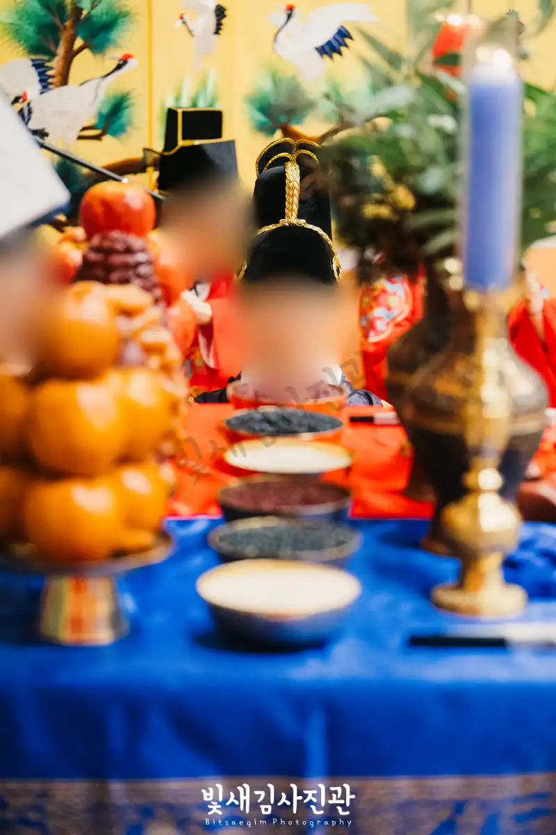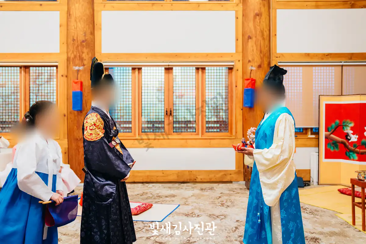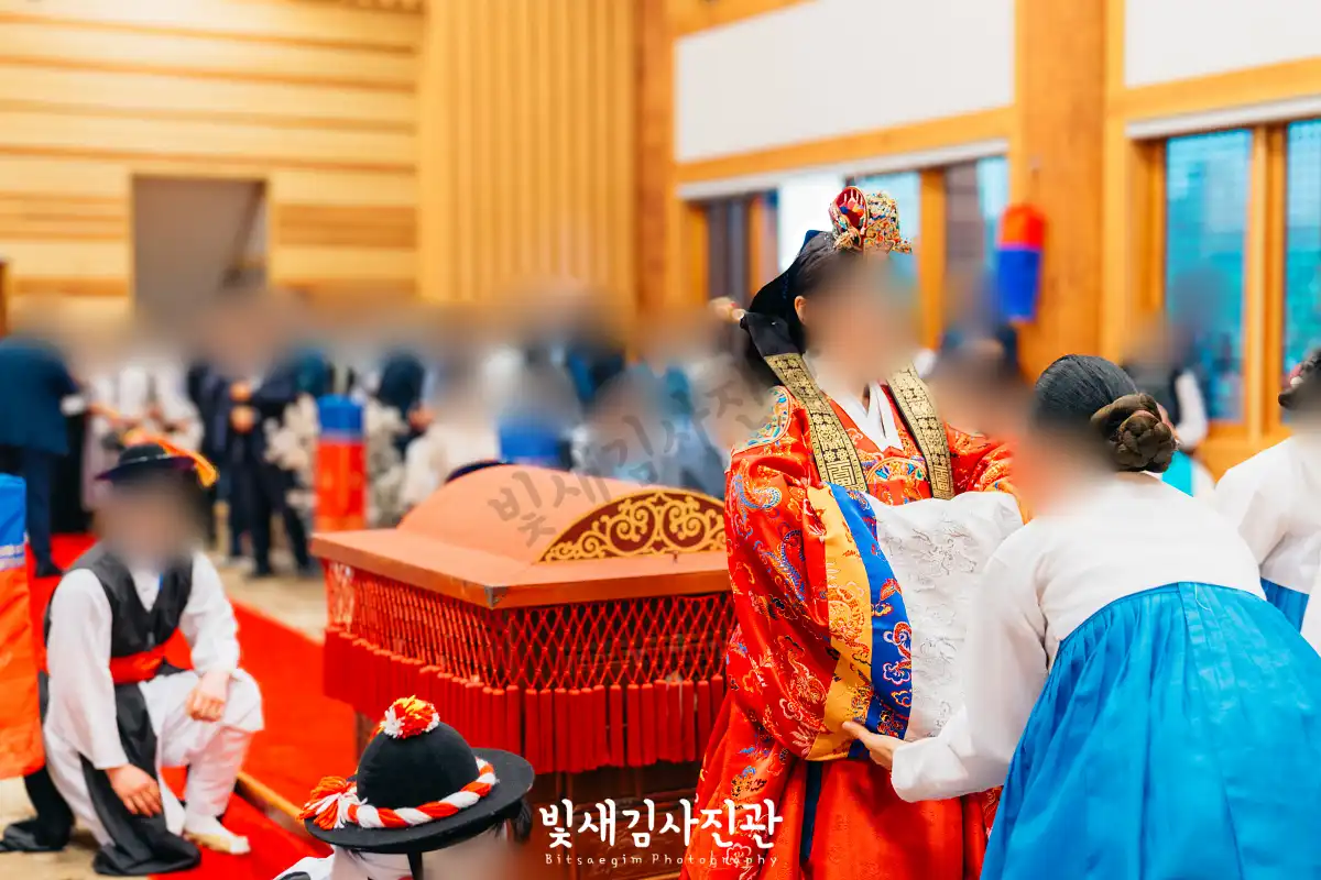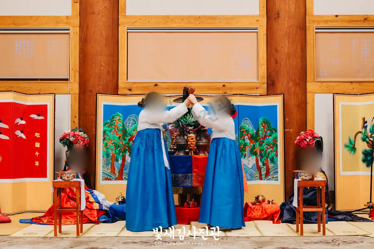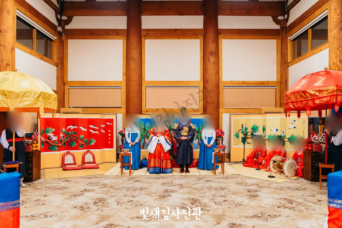 이번 촬영은 예식 3시간 전 시작해서 사전스냅 1시간 / 리허설 및 환복, 예식준비 1시간 / 대기실 하객맞이 1시간 / 전통혼례 진행  순으로 촬영되었어요.