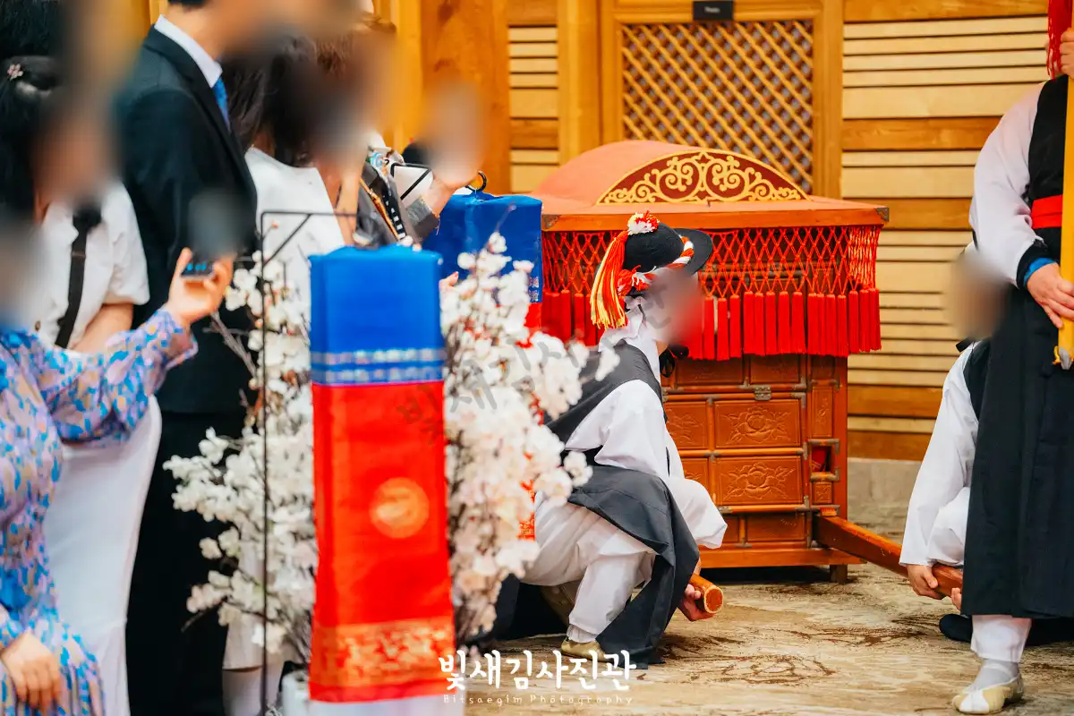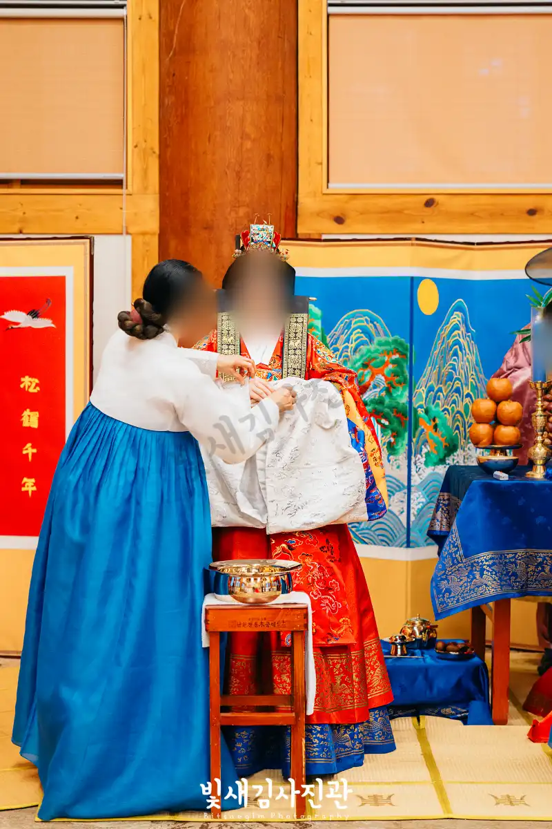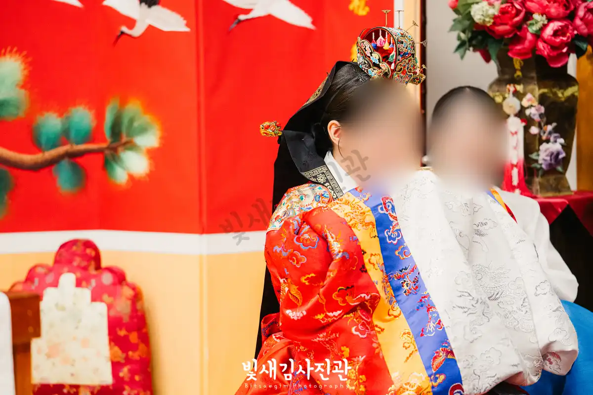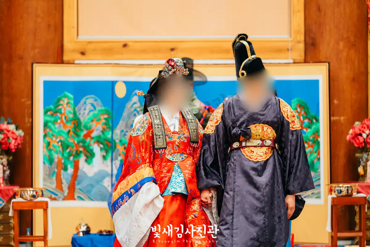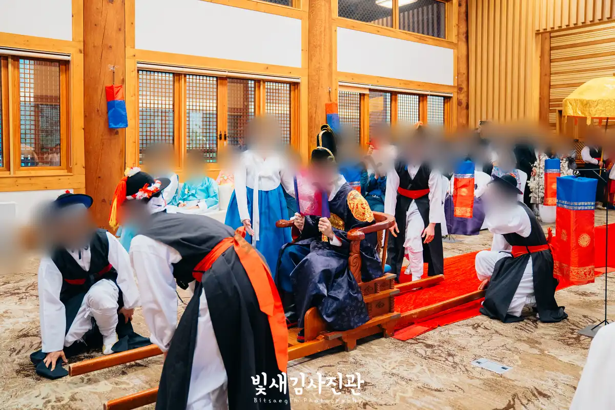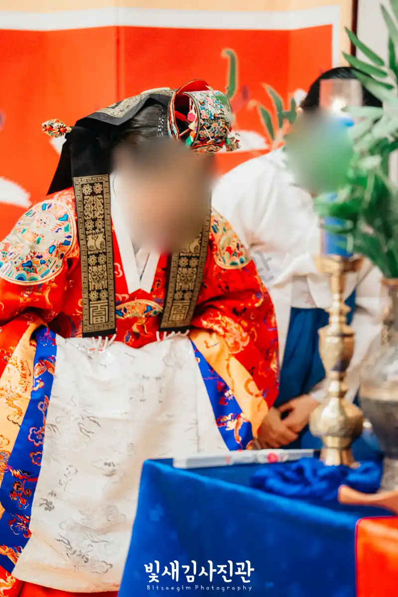 이번 촬영은 예식 3시간 전 시작해서 사전스냅 1시간 / 리허설 및 환복, 예식준비 1시간 / 대기실 하객맞이 1시간 / 전통혼례 진행  순으로 촬영되었어요.