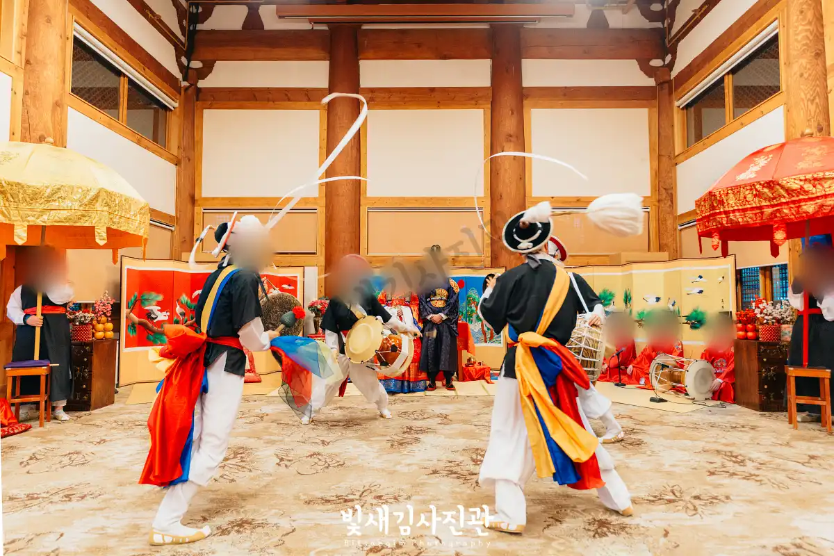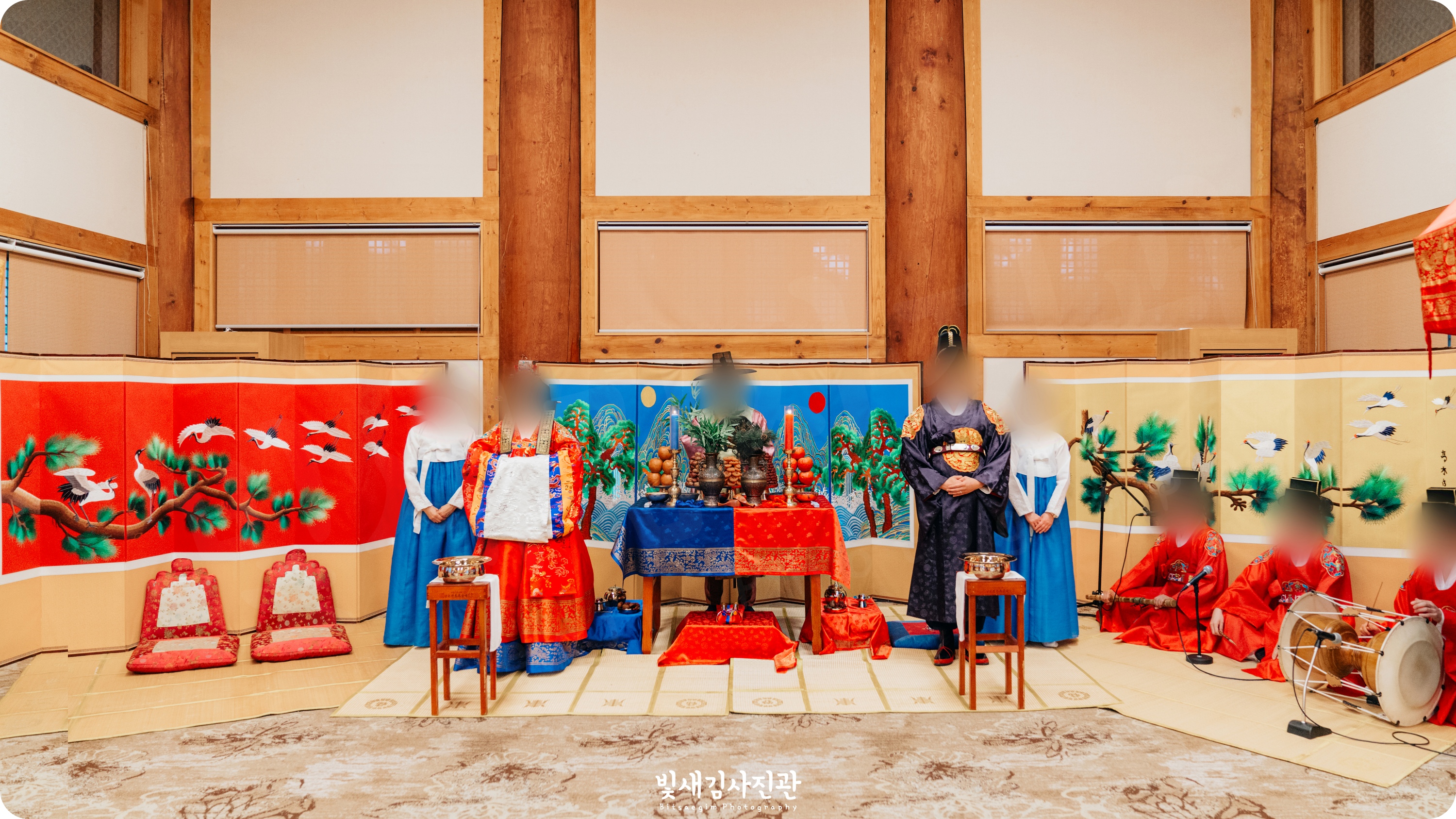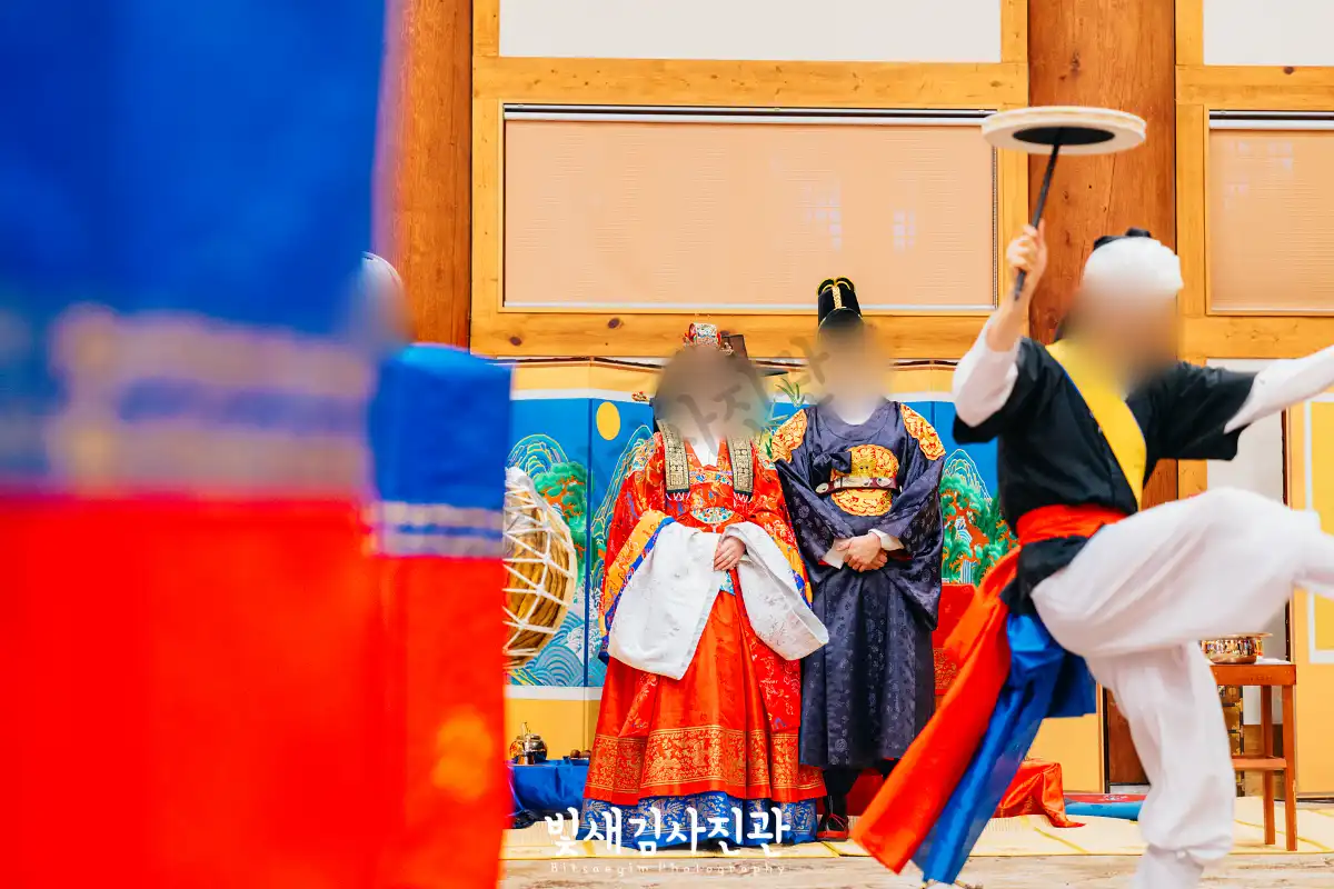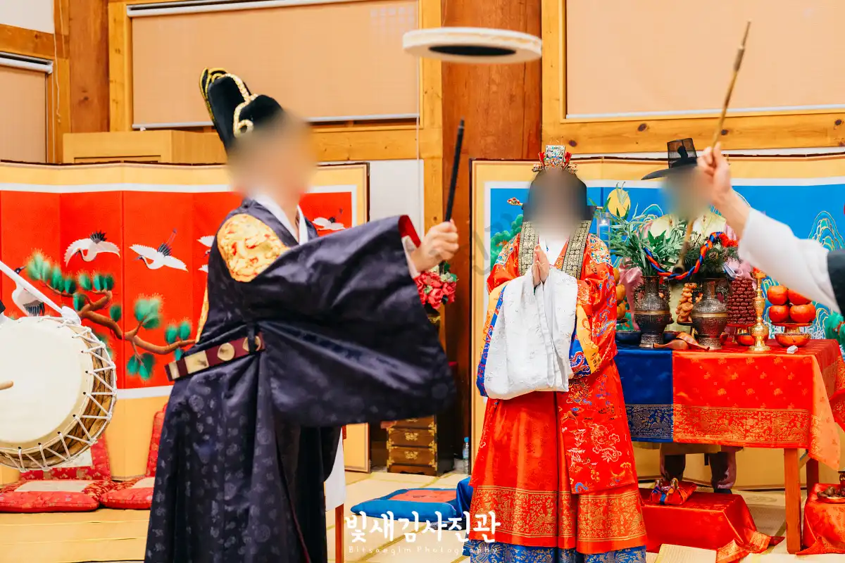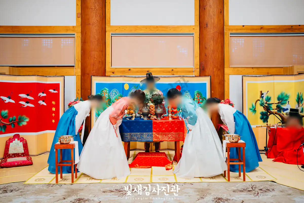 이번 촬영은 예식 3시간 전 시작해서 사전스냅 1시간 / 리허설 및 환복, 예식준비 1시간 / 대기실 하객맞이 1시간 / 전통혼례 진행  순으로 촬영되었어요.