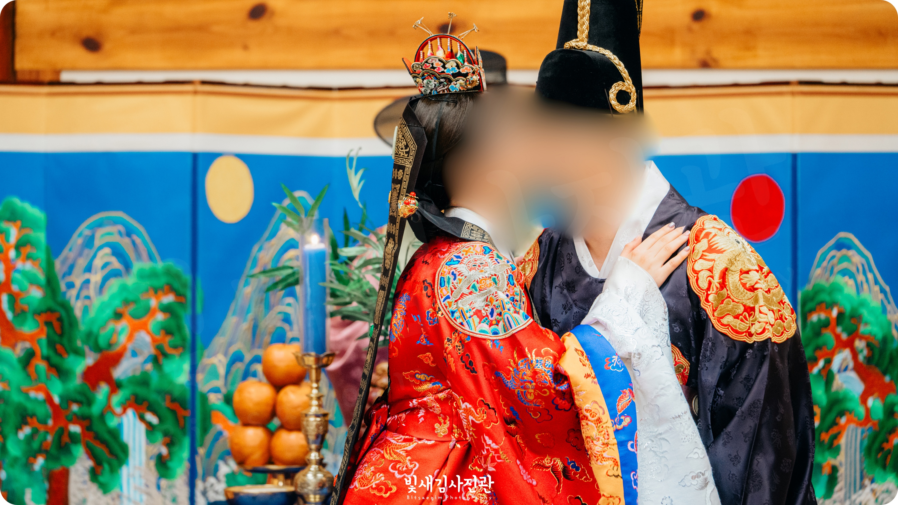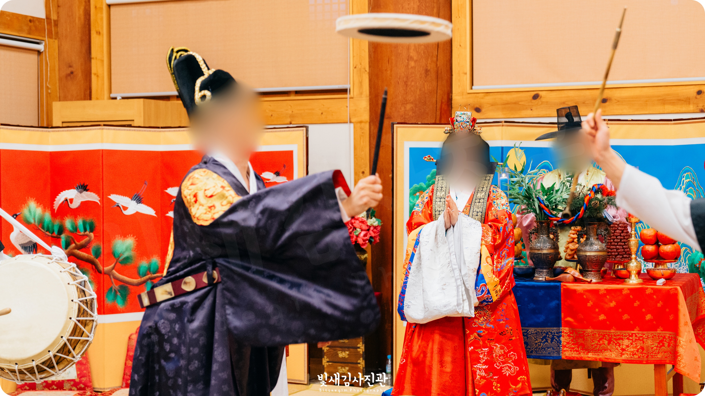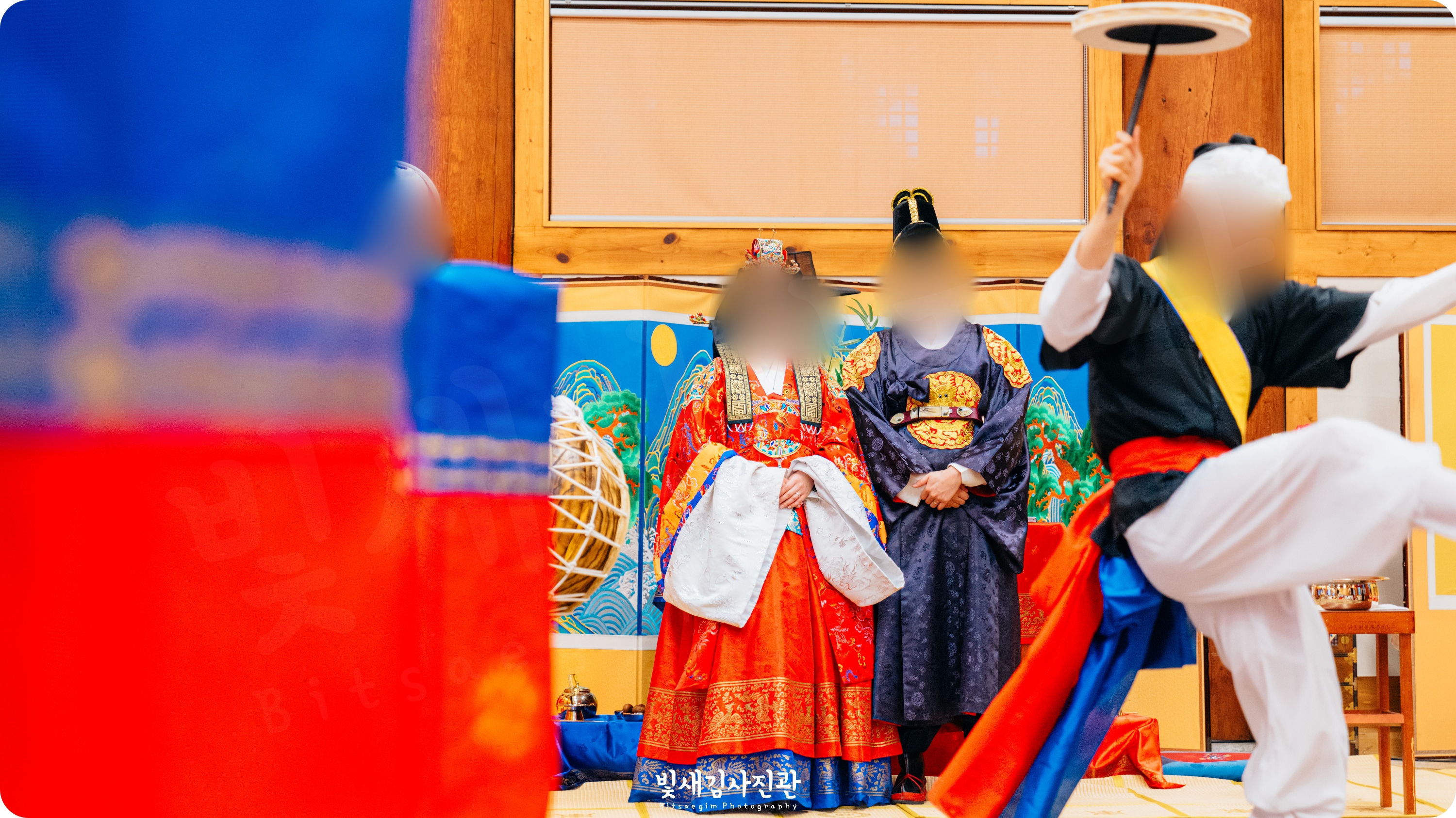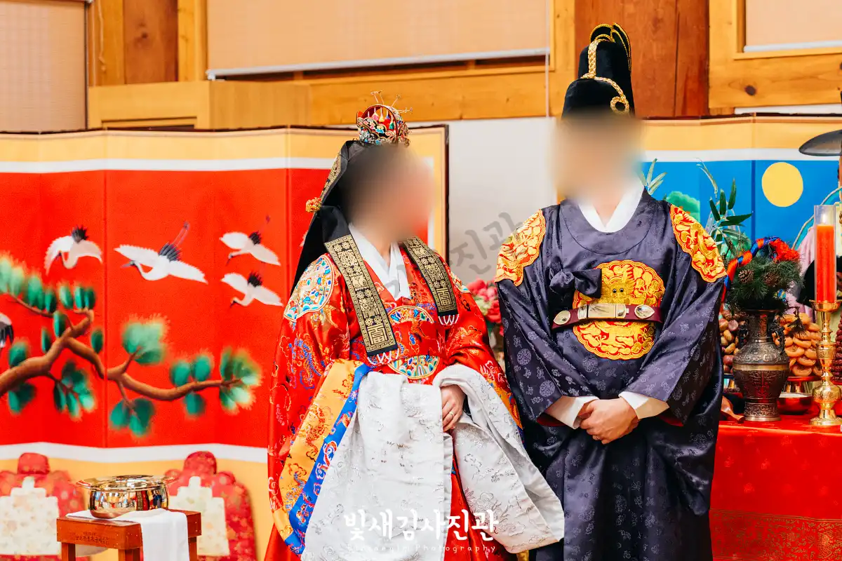 이번 촬영은 예식 3시간 전 시작해서 사전스냅 1시간 / 리허설 및 환복, 예식준비 1시간 / 대기실 하객맞이 1시간 / 전통혼례 진행  순으로 촬영되었어요.