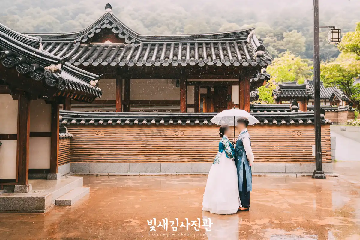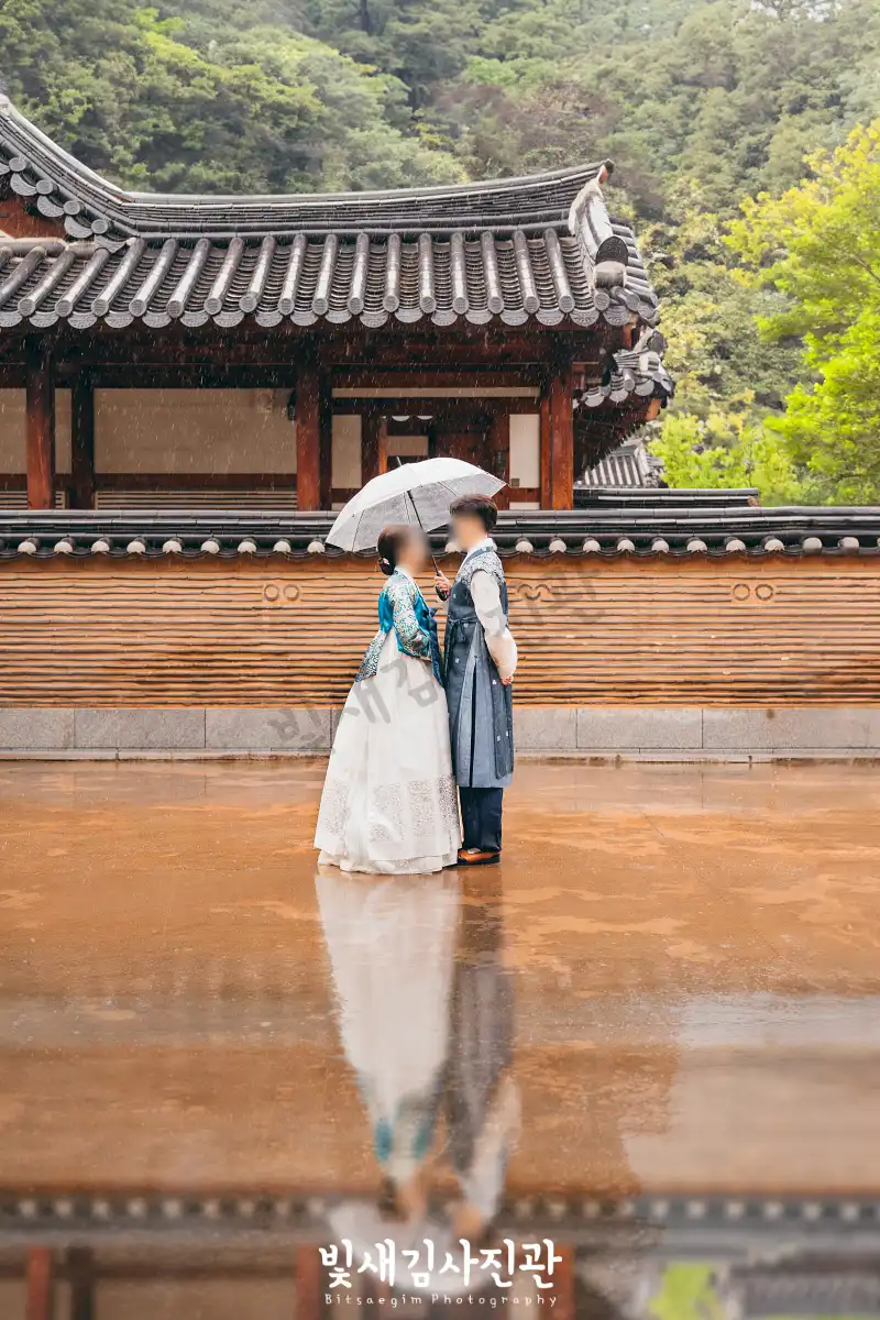 하지만 아름다운 한옥을 배경으로 하는 경원재에서의 야외스냅은 놓칠 수 없죠. 혼례 예식은 내부 홀에서 진행하지만, 한옥을 배경으로 하는 경원재 스냅사진도 받아보실 수 있게 야외촬영도 진행했습니다. 비가 내리는 현장이라 우산을 쓰고 진행했지만, 이 부분도 신랑신부님께 추억이 되지 않을까요. 비가오더라도 최대한 신랑신부님의 하루를 위해 야외촬영도 감행하니 걱정마시고 연락주세요.
