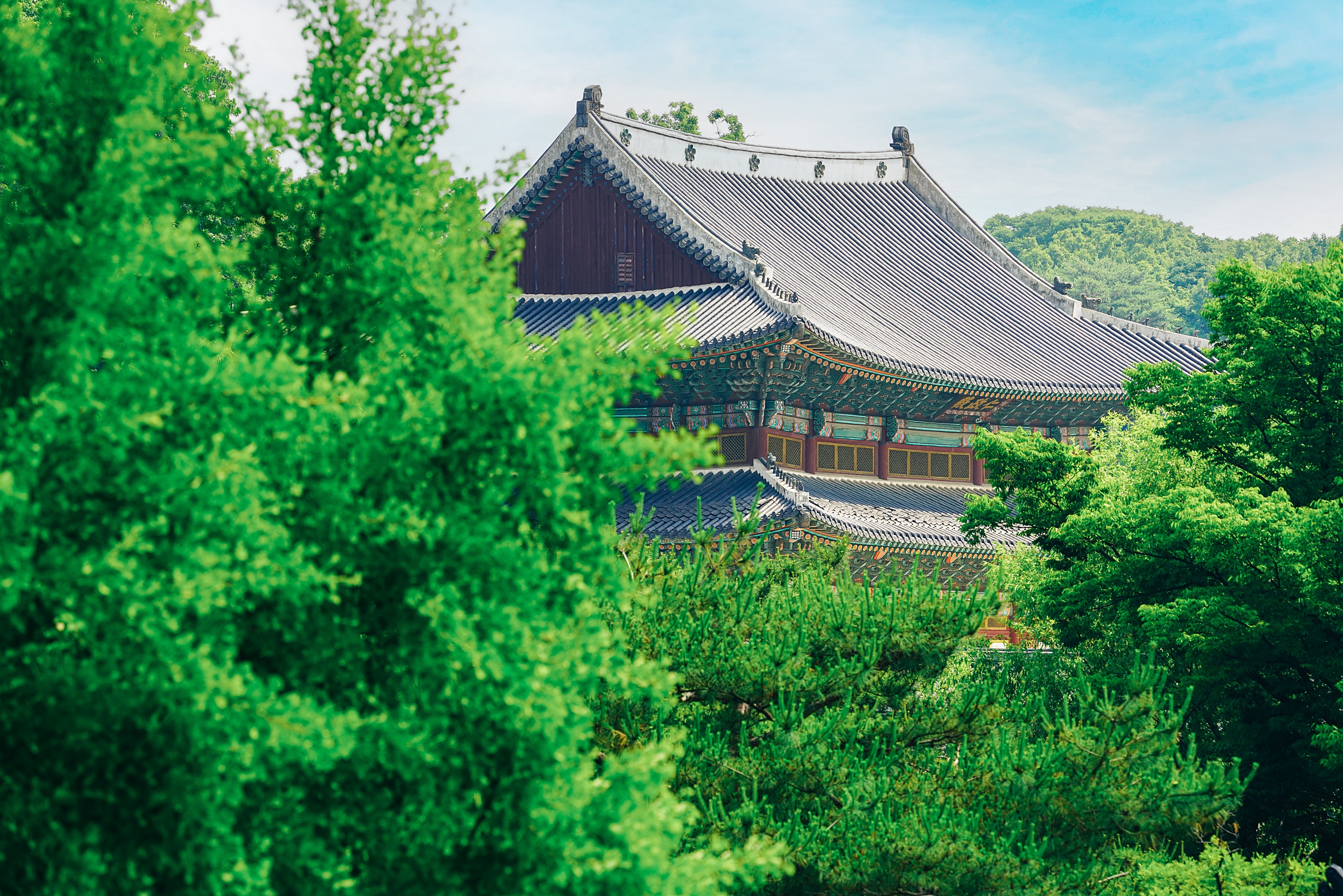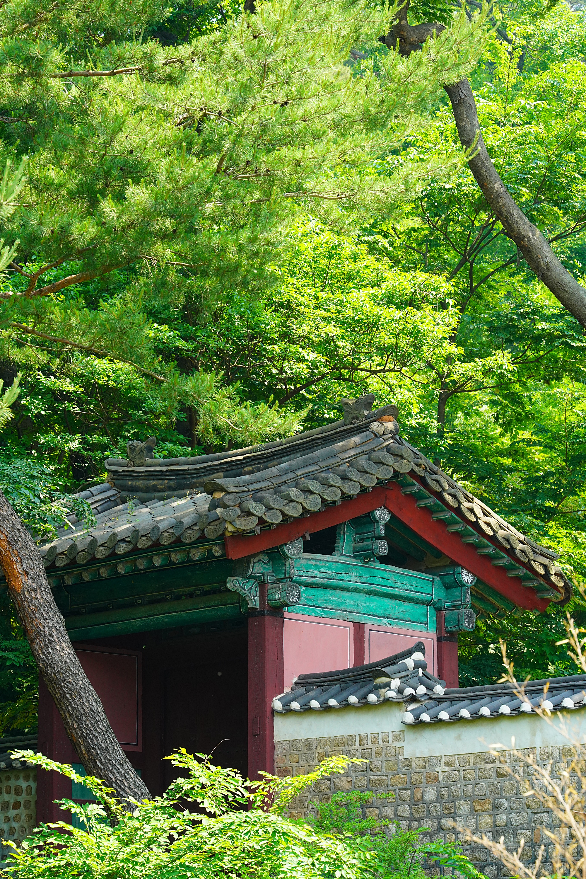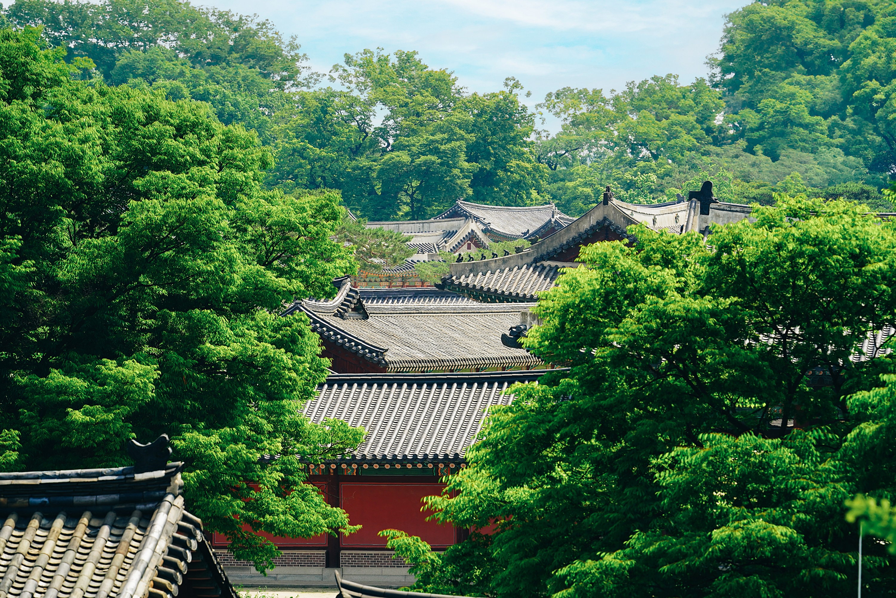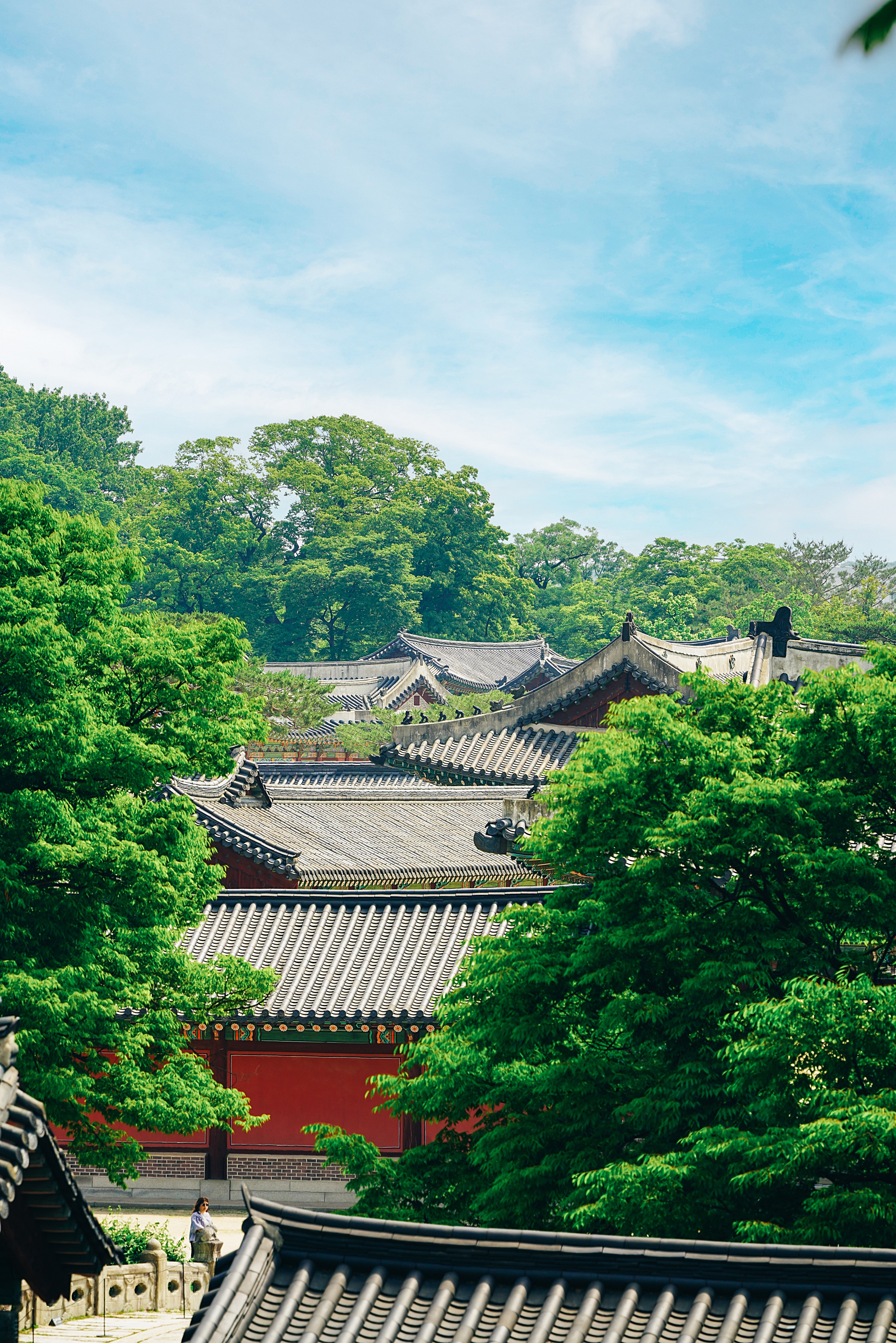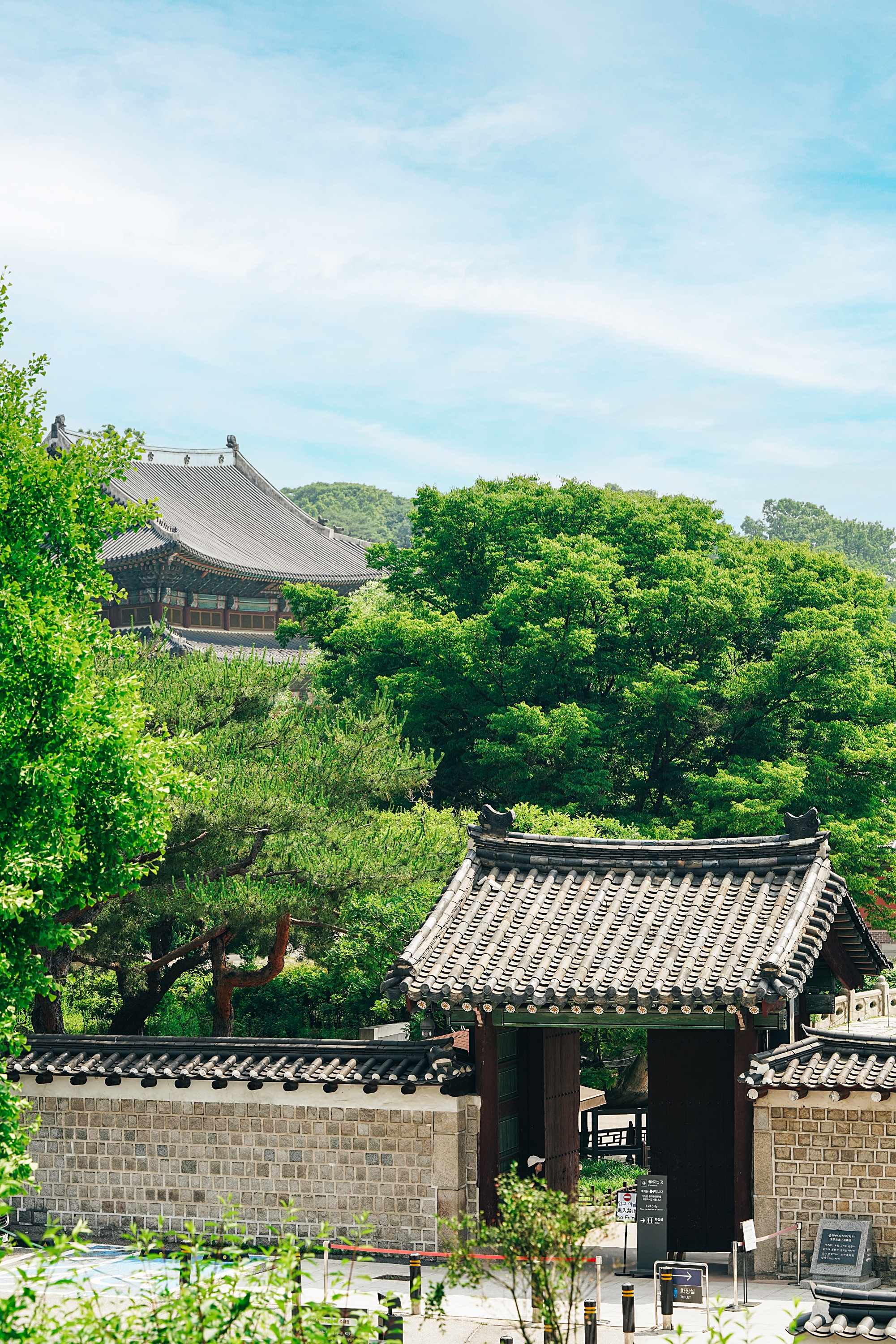 계단을 올라가야해서 회사차원의 공간인가 하면서 지나갔던 곳인데 다같이 이용할 수 있는 공원이었다. 현대원서공원. 길 하나를 두고 창덕궁이 자리하고 있어서 약간 높은 시선에서 창덕궁을 볼 수 있다. 창덕궁 창경궁 내부 관람은 자주 갔지만 바깥에서 본다는 생각을 해본적이 없었는데, 바깥에서 보는 창덕궁 모습도 정말 좋았다. 초록 가득한 여름 느낌 가득.