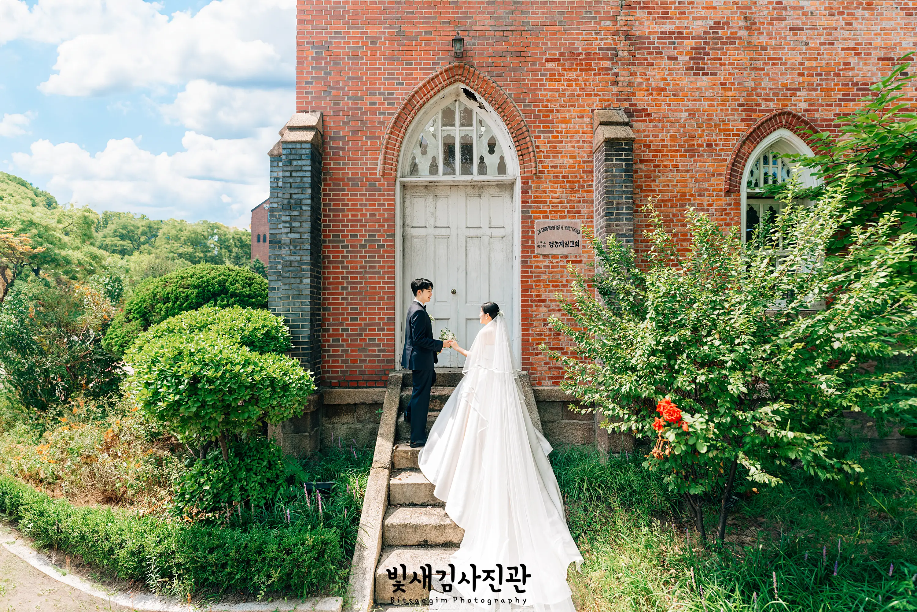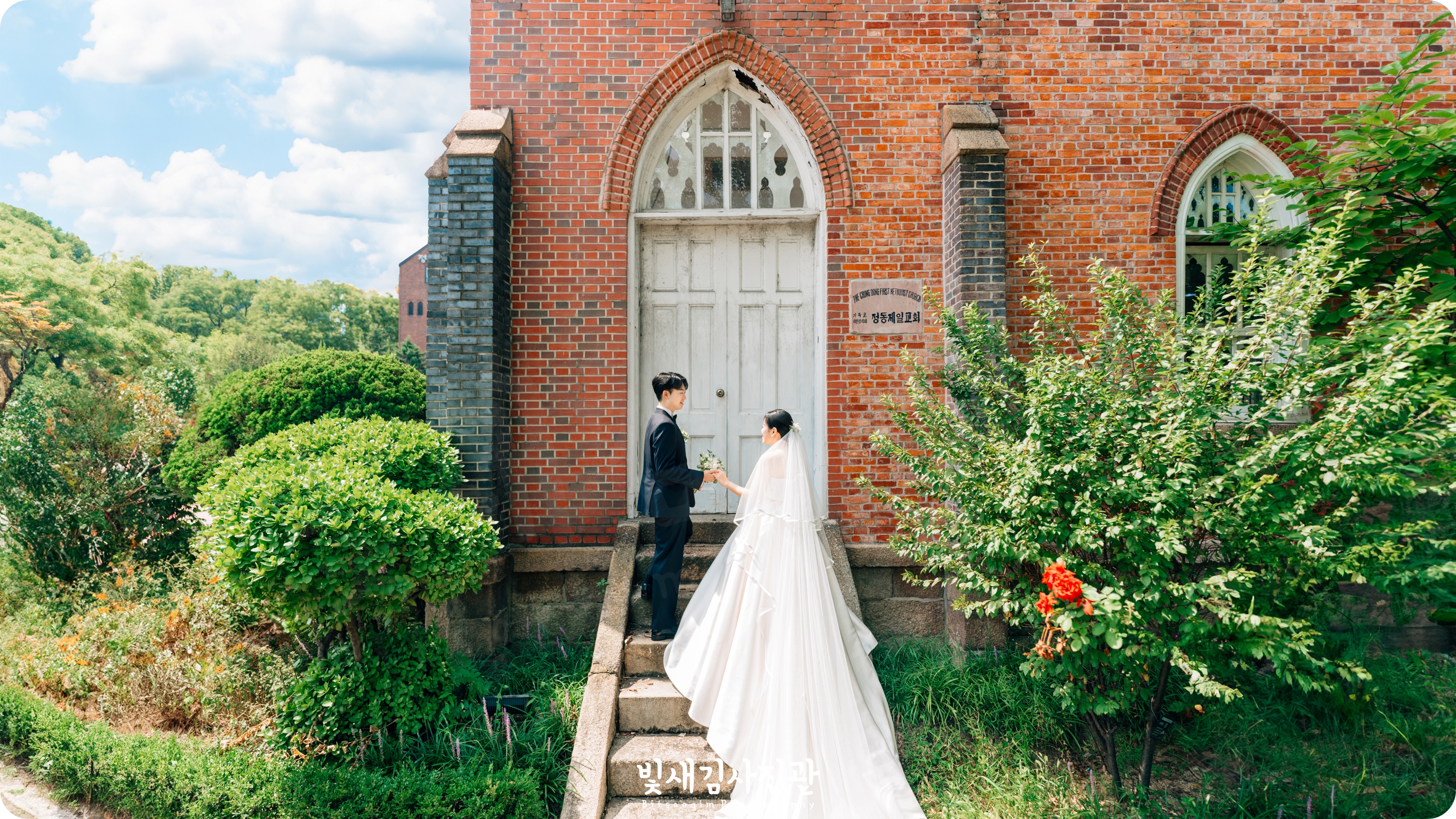 정동제일교회 결혼예배 스냅촬영 다녀왔어요. 덕수궁 돌담길과 정동길 사이에 자리한 정동교회는 우리나라에 최초로 세워진 개신교 교회로, 이번 결혼예식이 진행된 정동제일감리교회 벧엘예배당은 서양식 결혼식이 우리나라에서 최초로 진행된 장소이기도 해요. 1897년에 세워진 이래로 우리나라 격랑의 근현대사를 함께해온 역사적 의미가 서려있는 장소로 대한민국 사적 제256호로 지정되어 있는 곳이에요. 의미있는 장소에서 아름다운 순간들을 빛새김사진관이 함께할 수 있게 되어서 예약문의 주셨을 때부터 가슴이 콩닥콩닥. 긴장과 설렘을 느끼며 촬영 준비를 위해 사전답사도 다녀왔던 기억이 나요.
