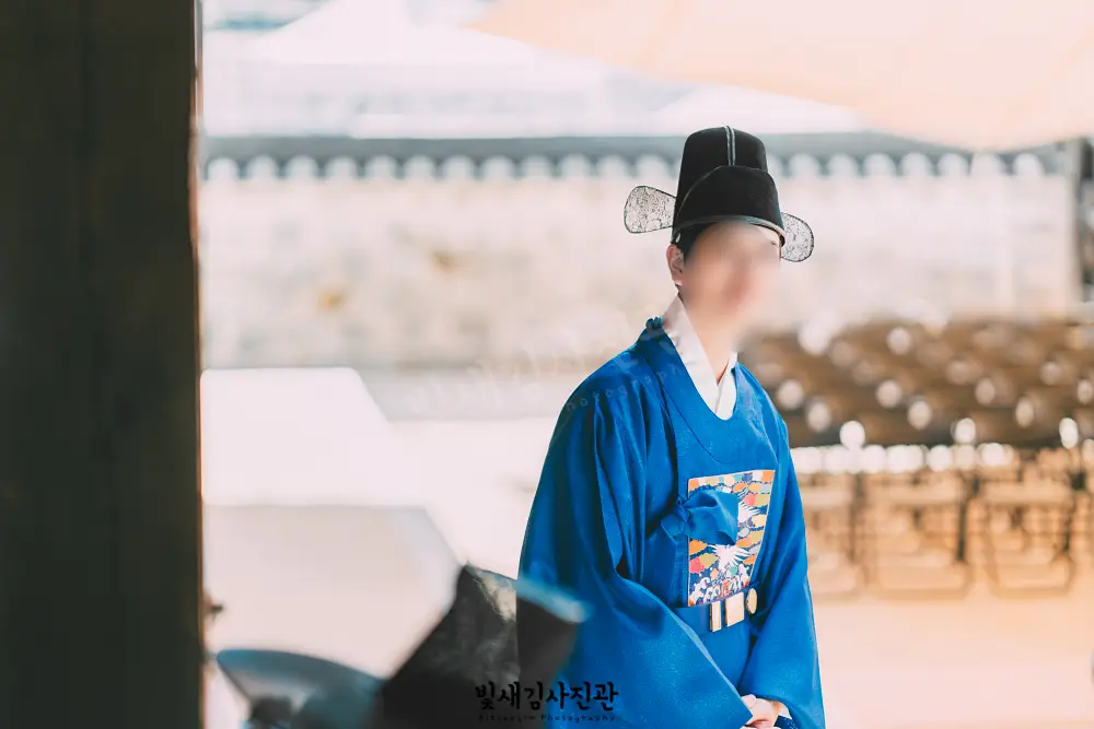 운현궁과 고궁 한옥 전통혼례 청명한 가을 하늘이 운현궁의 기와지붕 위로 펼쳐진 날, 저는 특별한 커플의 전통혼례 스냅 촬영을 진행했습니다. 한국인 신부님과 독일인 신랑님의 국제커플로,