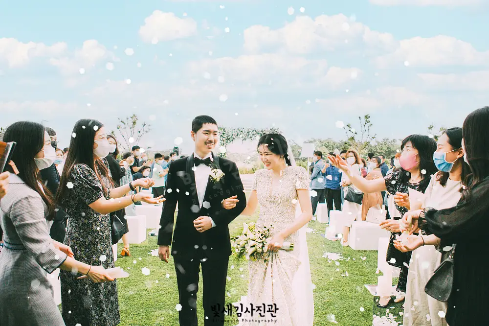 - 자연광의 아름다움, 다채로운 배경, 자유로운 분위기가 야외 웨딩 결혼식의 주요 장점