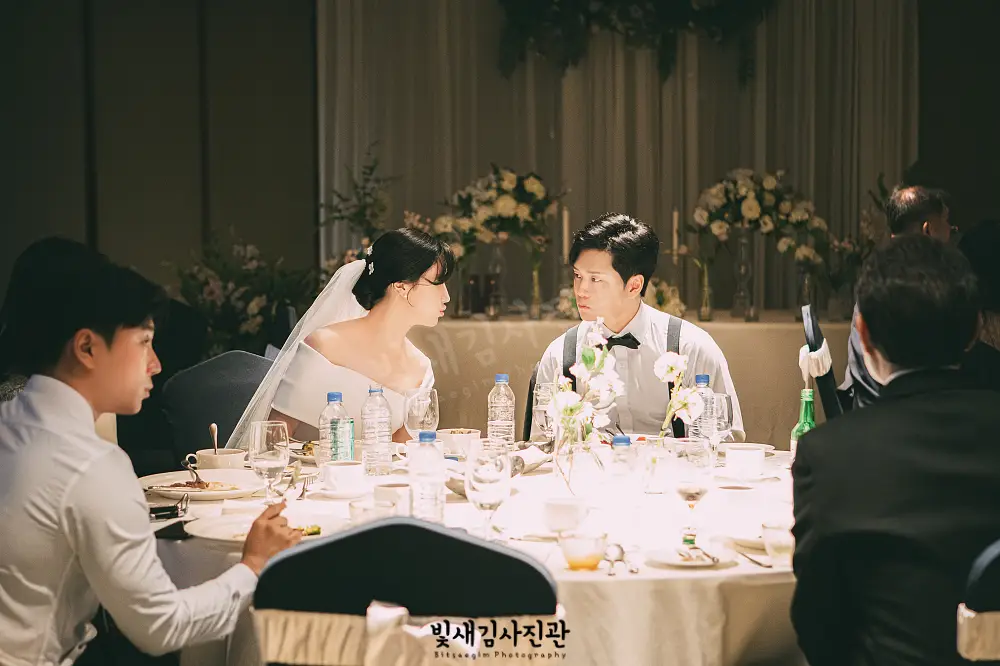 작은 공간에서의 촬영인 만큼 카메라 소음이나 플래시 사용에 더욱 신경 써야 합니다. 가능한 한 무음 모드를 활용하고, 플래시 사용 시에는 간접광을 활용하여 하객들의 시선을 방해하지 않도록 합니다.