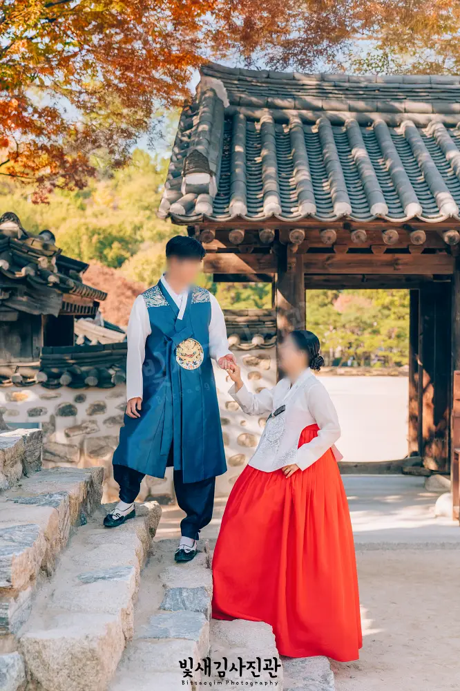 남산골한옥마을 한복웨딩 빈티지 필름톤 스냅, 빛새김사진관 국제커플 한복스냅 빈티지