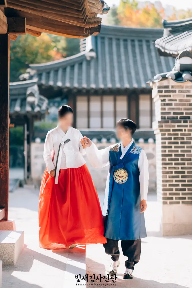 서울 남산골한옥마을 커플한복스냅충무로 남산골한옥마을 국제커플 한복스냅 촬영. 남산한옥마을에서 전통혼례 결혼식이 있던 날, 빛새김사진관에 본식스냅 촬영을 맡겨주셔서 신랑신부님과