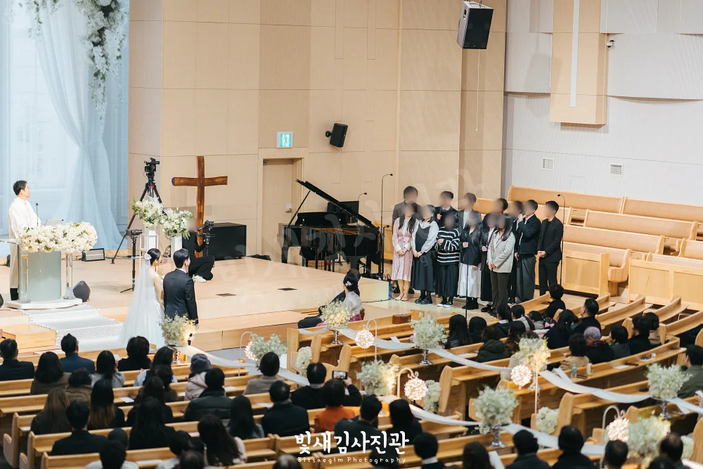 용인 수지선한목자교회에서 열린 결혼식, 축복된 자리에 빛새김사진관이 결혼예배 본식스냅 촬영으로 함께했습니다.