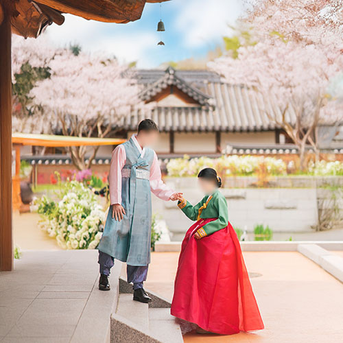 경원재 야외결혼식 본식스냅, 송도 센트럴파크 한옥웨딩 한복드레스 봄 웨딩 피치톤 파스텔톤