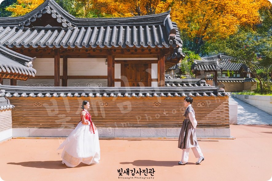 이번 경원재 웨딩 본식스냅 촬영은 식전한복스냅으로 시작해 하객맞이 기념촬영, 전통혼례 본예식, 식 이후 하객단체기념사진 촬영까지 진행되었구요. 전체적인 사진 톤과 수정방향은 화려한 색채를 살리고 가을분위기 만끽하실 수 있도록 색감과 톤을 맞춰 진행했습니다.