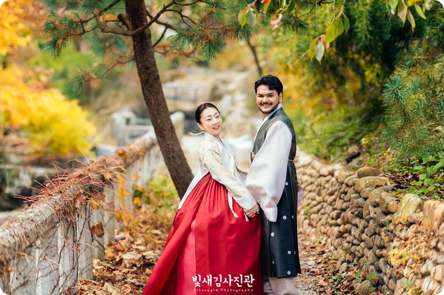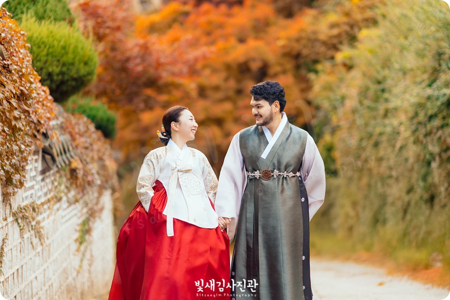 서울 남산골한옥마을 커플한복스냅충무로 남산골한옥마을 국제커플 한복스냅 촬영. 남산한옥마을에서 전통혼례 결혼식이 있던 날, 빛새김사진관에 본식스냅 촬영을 맡겨주셔서 신랑신부님과