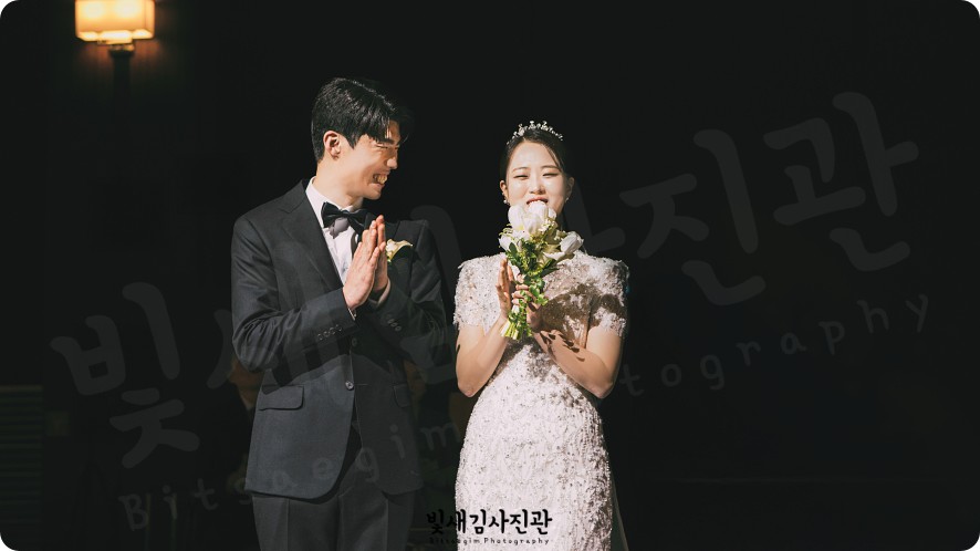 저는 그럴 때일수록 신랑, 신부님의 표정에 더 집중해요. 기도하시는 두 분의 맞잡은 손, 주례 목사님의 축복 기도 속에서 살며시 눈을 감은 모습 같은 것들이요. 익산웨딩촬영을 할 때 제가 가장 공을 들이는 부분이기도 하죠. 호텔의 화려한 배경 속에서도 '예배'라는 본질이 흐려지지 않게, 성스럽고도 우아한 톤을 유지하는 것이 빛새김사진관의 스타일이랍니다.