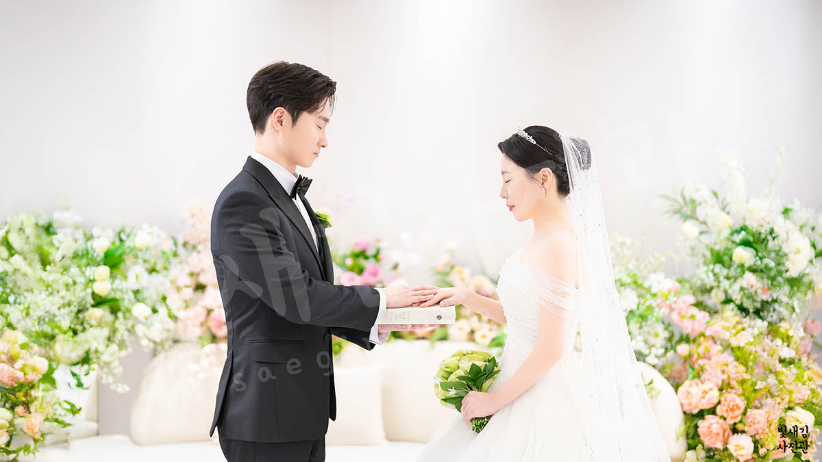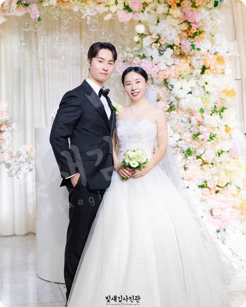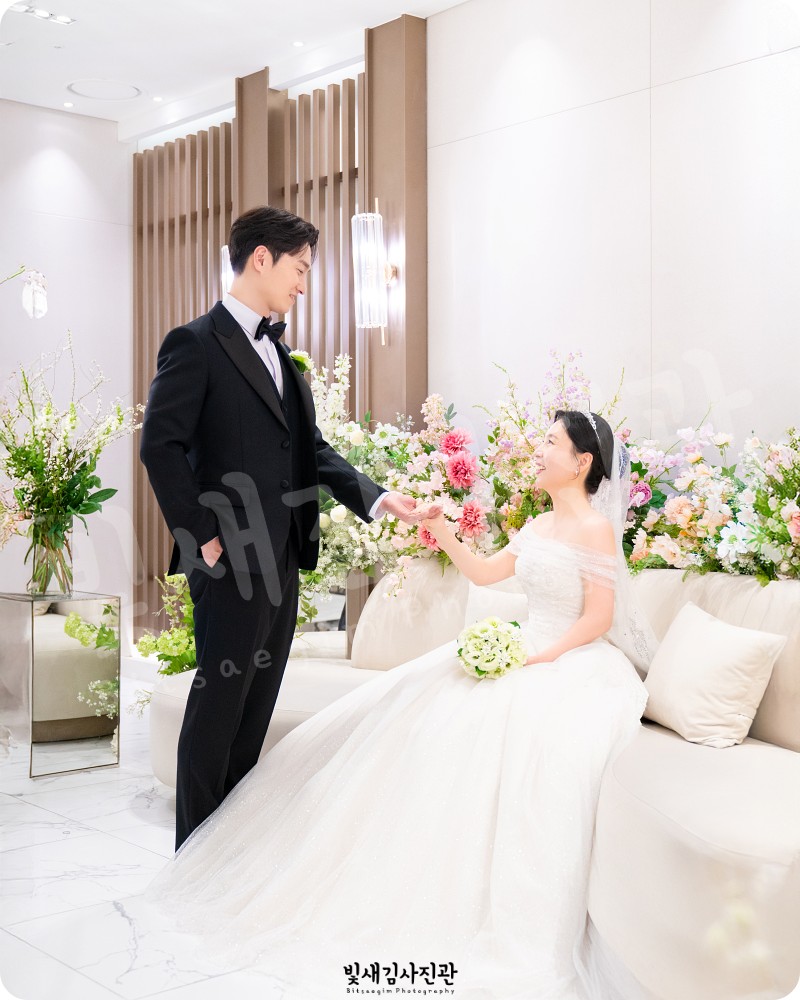 빛새김사진관의 가장 큰 특징은 바로 '인물 중심'이라는 점이에요. 화려한 장식이나 넓은 광각 샷도 필요하지만, 결국 시간이 흘러 꺼내 보게 되는 건 그때 두 분의 표정이거든요. 신도림웨딩시티의 조명을 활용해 두 분의 피부 톤을 가장 아름답게 살리고, 시선이 분산되지 않도록 구도를 잡습니다.