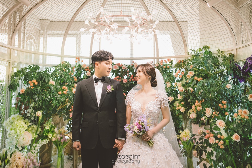 루벨의 신부대기실은 돔 형태의 정원처럼 연출되어 있어요. 꽤 독특한 디자인이었던 신부대기실! 가족분들과의 순간들도 물론, 친구나 지인분들과도 함께 추억 남기실 수 있게 신부대기실 촬영도 제가 진행해요.