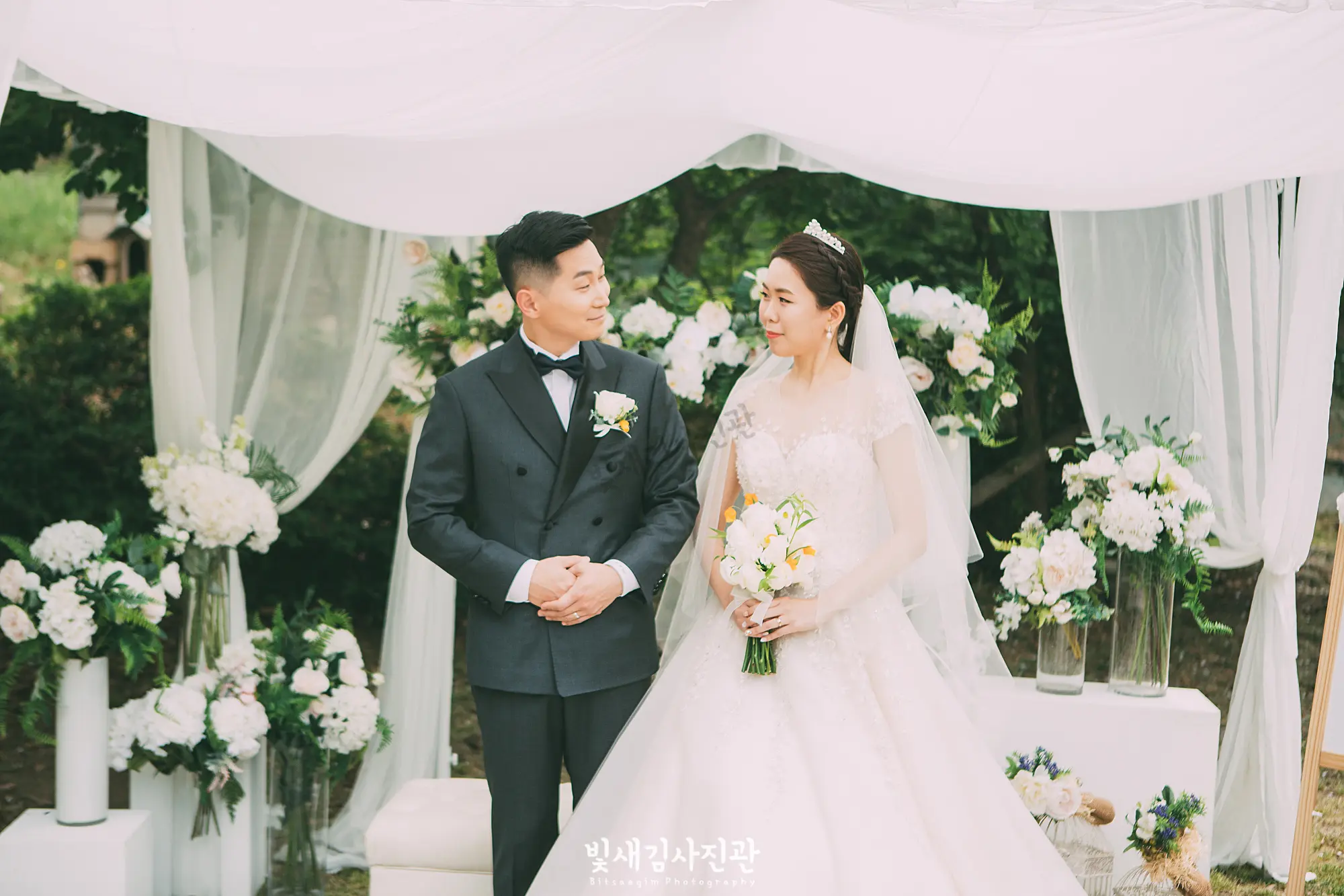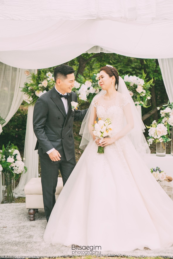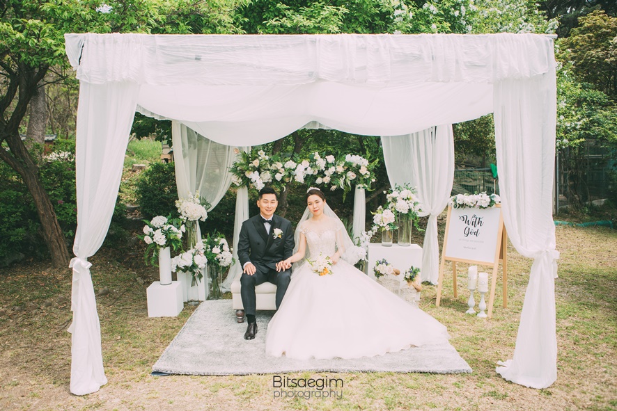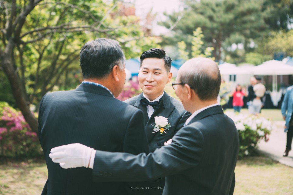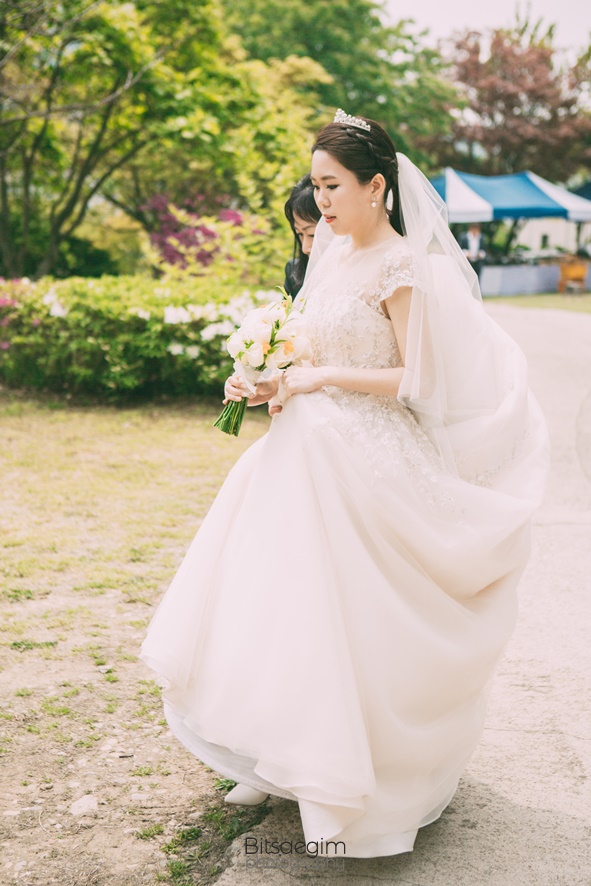 5월은 결혼식을 위한 최적의 계절입니다. 차갑지도, 덥지도 않은 날씨와 만물이 소생하는 생동감 넘치는 분위기는 새로운 시작을 알리는 결혼식과 꼭 맞는 조화를 이룹니다. 이날의 결혼식 역시 5월의 푸른 하늘과 따스한 햇살이 신랑신부의 행복한 미소와 어우러져 완벽한 웨딩 사진을 만들어냈습니다. 요즘 트렌드인 야외 결혼식의 매력을 이날 다시 한 번 확인할 수 있었습니다. 교회 뒤편에 마련된 넓은 잔디밭과 아름다운 꽃들로 장식된 정원은 그 자체로 완벽한 자연 스튜디오였습니다.