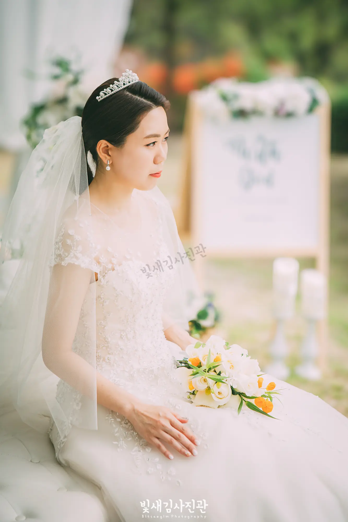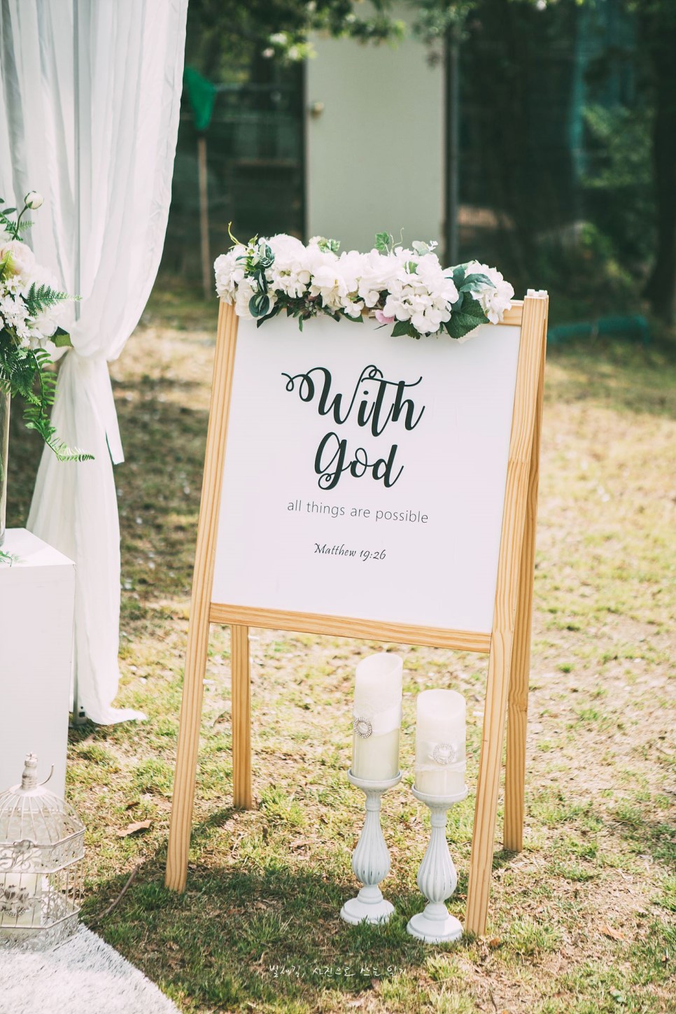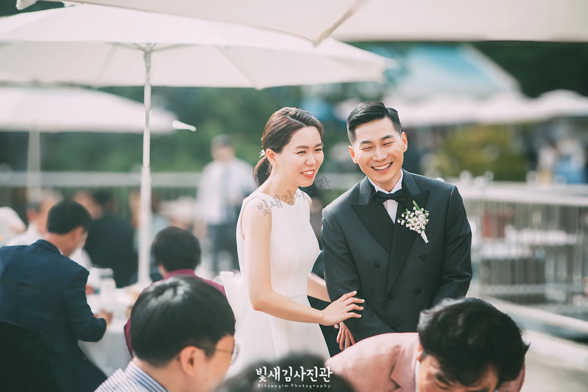 5월은 결혼식을 위한 최적의 계절입니다. 차갑지도, 덥지도 않은 날씨와 만물이 소생하는 생동감 넘치는 분위기는 새로운 시작을 알리는 결혼식과 꼭 맞는 조화를 이룹니다. 이날의 결혼식 역시 5월의 푸른 하늘과 따스한 햇살이 신랑신부의 행복한 미소와 어우러져 완벽한 웨딩 사진을 만들어냈습니다. 요즘 트렌드인 야외 결혼식의 매력을 이날 다시 한 번 확인할 수 있었습니다. 교회 뒤편에 마련된 넓은 잔디밭과 아름다운 꽃들로 장식된 정원은 그 자체로 완벽한 자연 스튜디오였습니다.