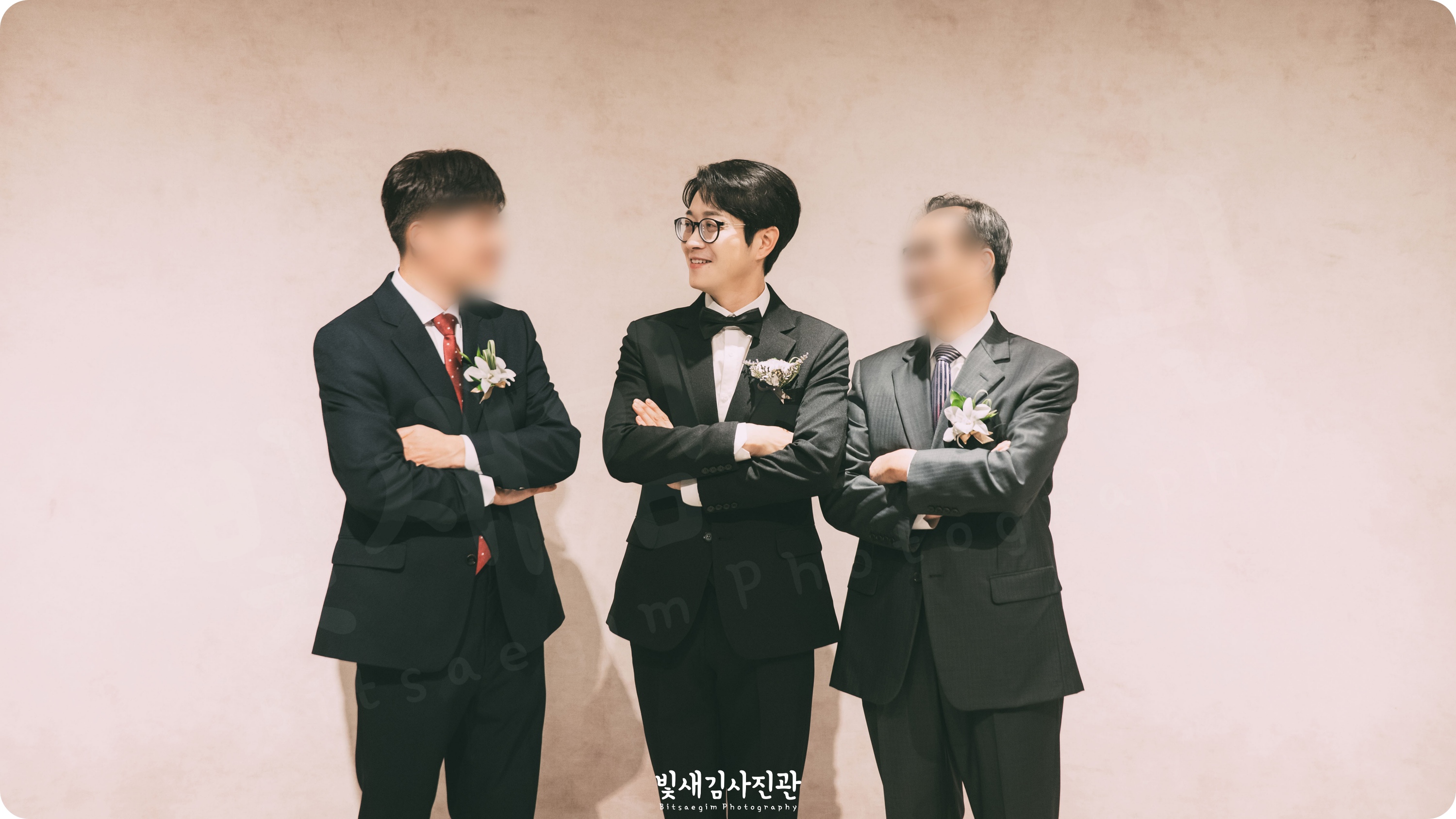 이번 촬영은 빛새김 대표인 제가 직접 1인 촬영으로 진행했습니다. 원판 촬영은 홀 연계로 진행하셨지만, 저는 예식이 끝날 때까지 곁을 지켰어요. 마지막 원판 촬영이 진행되는 순간에도 스냅은 계속되어야 하니까요! 정면을 보는 정직한 사진도 필요하지만, 친구들과 웃으며 담소를 나누는 모습, 긴장이 풀려 활짝 웃는 신랑님의 모습 같은 것들이 나중에 꺼내 봤을 때 더 큰 감동을 주거든요.